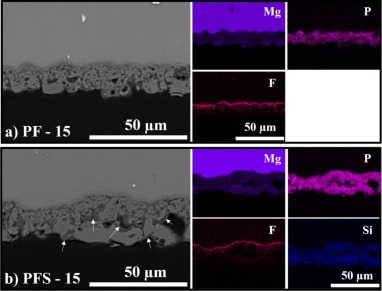 Şekil 6. Farklı kaplamaların korozyon testinden sonraki kesit alanı ve onların EDX haritaları [1]