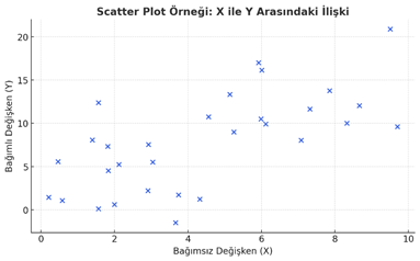 Şekil 3. Bağımlı değişken (X) ve bağımız değişken (Y) arasındaki ilişkiyi gösteren bir scatter plot örneği.